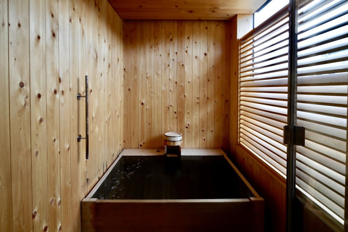 貸切露天風呂「ほのか」は、床はフラットで、シャワーチェアあり。車いすで浴室内まで入ることができます(有料・要予約)▼