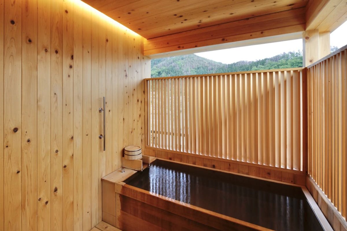 「双泉の宿 朱白」は、絶景をたのしめる大浴場・展望露天風呂があり、また貸切の露天風呂もあります。